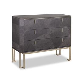 El dormitorio Bond irradia sofisticación y encanto atemporal. Ofreciendo una versión refinada del diseño geométrico característico, este acabado mate aporta un toque contemporáneo. El elemento central es la cama Bond, una pieza magistral que llama la atención con sus finos acabados en madera y su base de metal entrelazado.