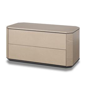 Marble top. Two drawers with touch-latch system. Metal base. Stainless steel decorative trim under the top.