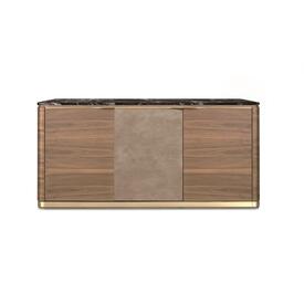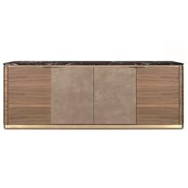 The Santa Barbara four-door Credenza is inspired by grandeur and refinement. This HURTADO design has leather on the central doors. The Santa Barbara credenza is beautifully crafted by HURTADO and set to be a beautiful addition to the room.