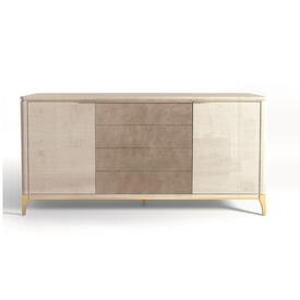 El aparador Soho tiene un diseño funcional pero lleno de connotaciones lujosas, que se reafirman en el glamour con tapas de mármol o madera y frentes en piel o madera, así como tiradores y bases de latón.
