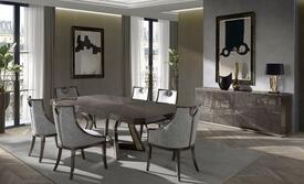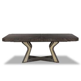 La mesa de comedor Emerald, perteneciente a la colección de lujo de HURTADO, se caracteriza por contar con dos extensiones centrales. La incorporación de líneas rectas, detalles metálicos y acabados de primera calidad confieren un aire elegante y sofisticado a cualquier entorno de comedor. El diseño de esta mesa evoca una atmósfera de opulencia y distinción.