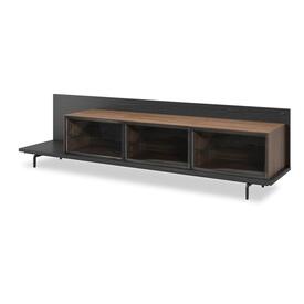 Transforma la decoración de tu sala de estar con el mueble TV de la colección Link, que cuenta con dos puertas trampón de cristal parsol gris. Con dos prácticos cajones y un espacio abierto, esta pieza combina estilo con funcionalidad. El panel trasero iluminado con LED realza la atmósfera general, creando un ambiente lujoso.